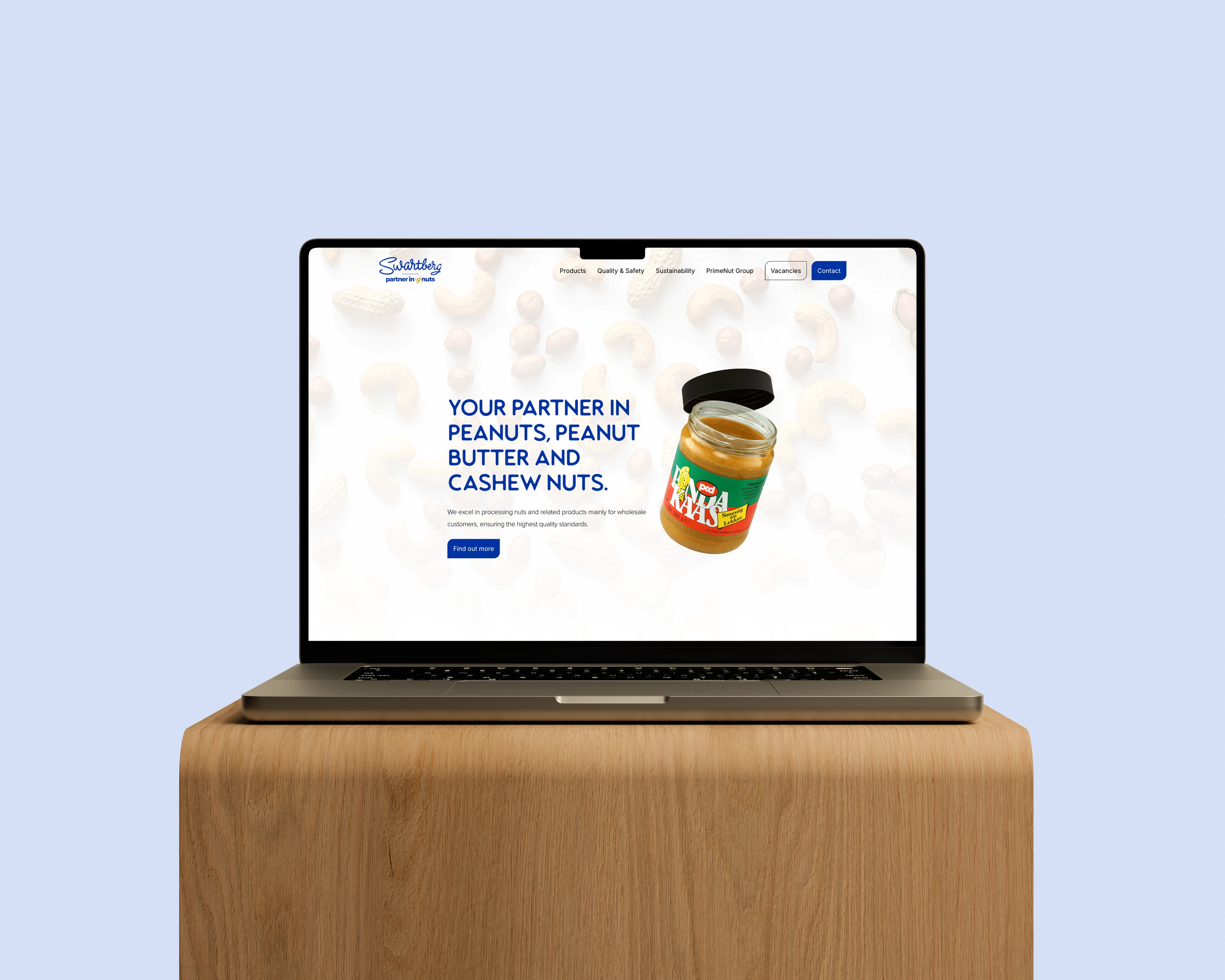 Elke dochteronderneming doet iets heel anders. Synergy Food verwerkt amandelen en abrikozenpitten voor de voedingsindustrie, Katjang Pedis is gespecialiseerd in de verwerking van noten, pinda's en zaden, en Swartsberg levert drie eigen merken aan een klantenkring die loopt van hotelketens tot snoepwinkels. Dat vraagt om vier compleet verschillende websites, maar ze moesten wel als één familie voelen. Dat hebben we gedaan door dezelfde stijl en tone of voice door te trekken, terwijl elke site z'n eigen verhaal vertelt.
