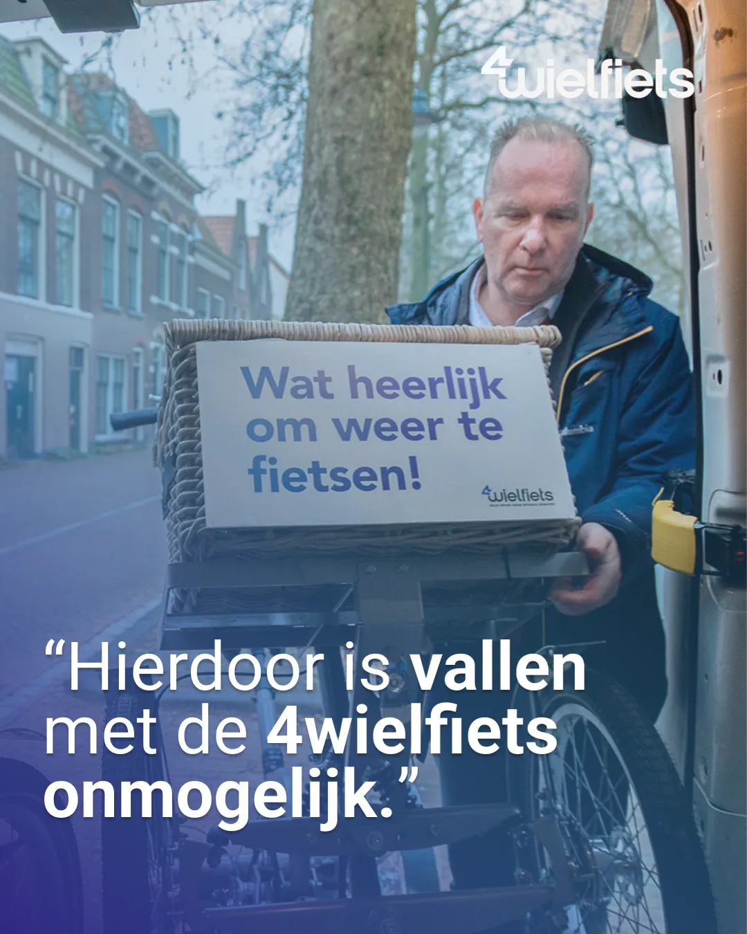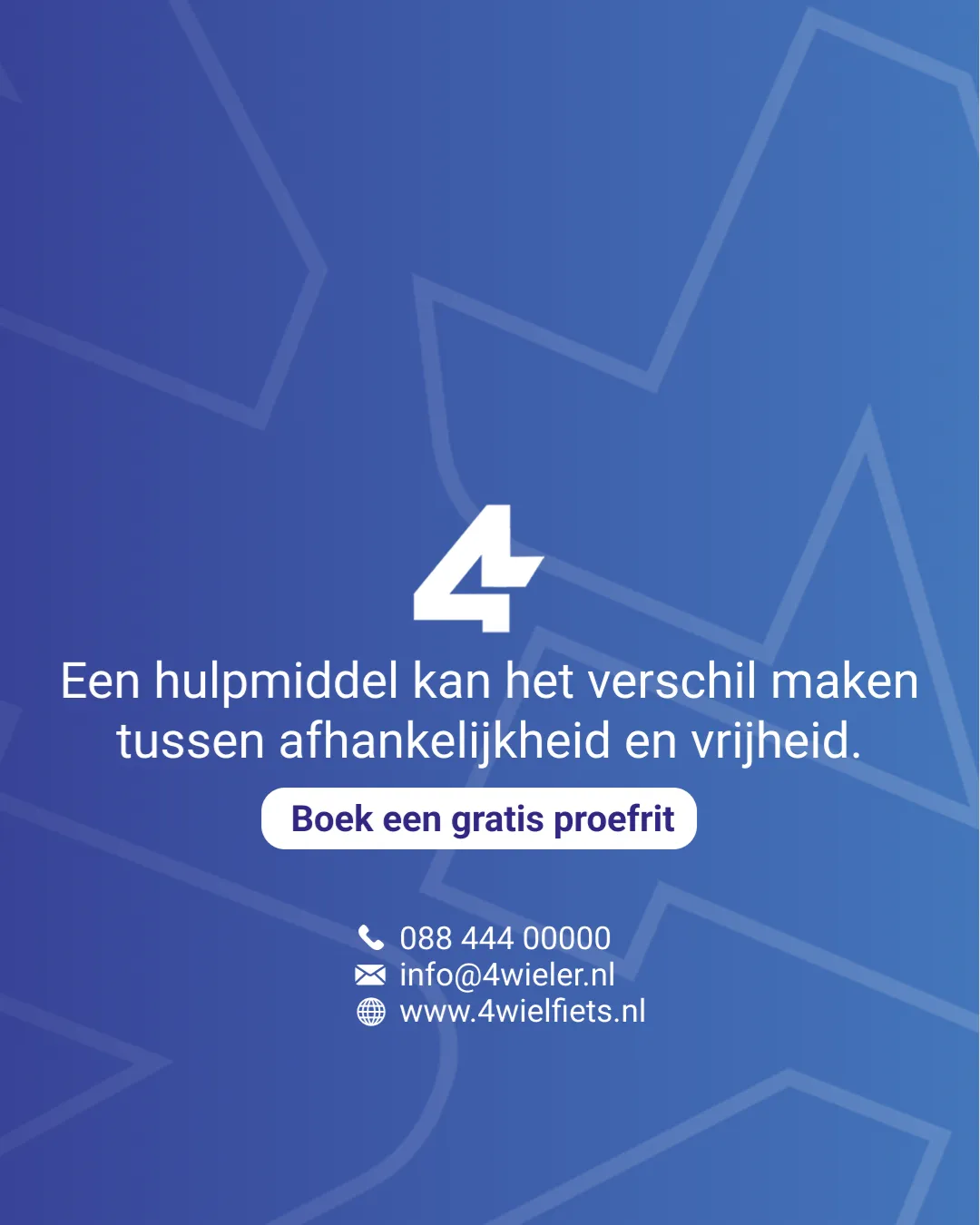 4wielfiets maakt fietsen weer mogelijk voor mensen die dat vaak al hadden opgegeven. De 4wielige elektrische fietsen geven stabiliteit, veiligheid en vrijheid terug aan ouderen en mensen met een beperking. Wat begon als een praktisch idee groeide uit tot een bedrijf dat laat zien dat mobiliteit voor iedereen bereikbaar kan zijn. We hielpen 4wielfiets met een merk en uitstraling die vertrouwen wekt: menselijk, duidelijk en zonder poespas.